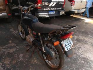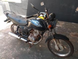 DESCRIÇÃO DO BEM: MOTOCICLETA HONDA CG TITAN, DE COR PRETA, PLACA DE LICENCIAMENTO ATUAL AJQ-2283, EM MAU ESTADO DE CONSERVAÇÃO E CHASSI PARCIALMENTE SUPRIMIDO/RASPADO, EM ESTADO DE SUCATA.