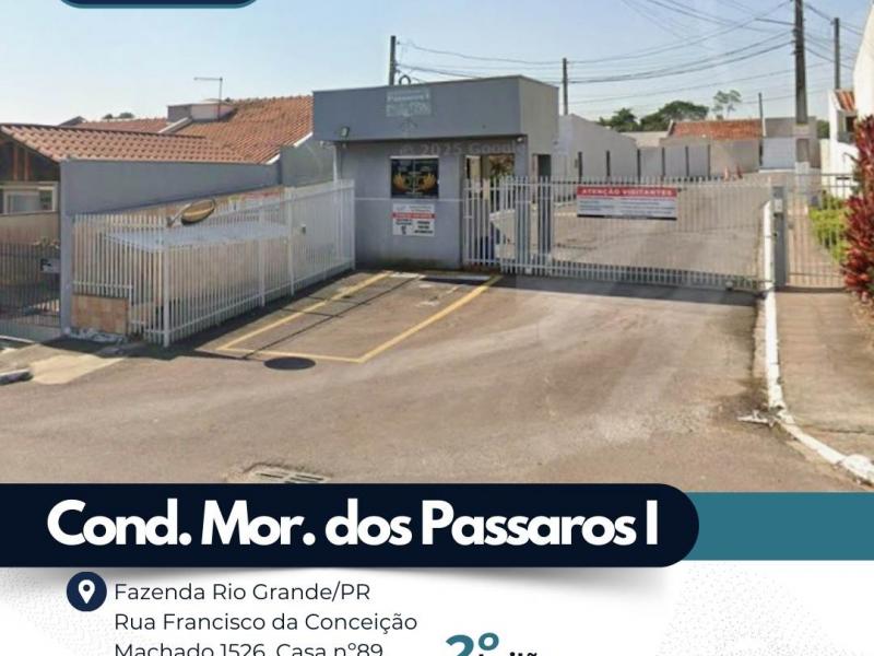 BEM (LOTE ÚNICO): “CASA No 89 (oitenta e nove), do Condomi?nio Residencial Morada dos Pa?ssaros I, situado nesta Cidade; com as demais medidas, caracteri?sticas e confrontac?o?es constantes na matri?cula no 29.207, do Registro de Imo?veis desta Cidade e Comarca de Fazenda Rio Grande/PR.”