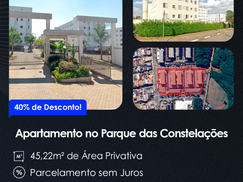 OBS.: 01: apartamento é composto por sala integrada para jantar e TV, cozinha estendida até a área de lavanderia, 02 (dois) dormitórios, banheiro e 02 (duas) vagas de estacionamento descobertas, de números 195 e 195/A. O Condomínio Residencial Parque Capricórnio dispõe de portaria privativa, portão automático, salão de festas com churrasqueira coberta na área externa, banheiros masculino e feminino, playground, brinquedoteca em ambiente interno e espaço destinado à academia e atividades de ginástica (Laudo de Avaliação às fls. 171/191).