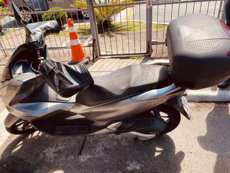 DESCRIÇÃO DO BEM: VEÍCULO HONDA/PCX 150, PLACA BDO2C34, BANCO COM PEQUENO RASGADO E ARRANHÕES, ALGUNS DETALHES NA LATARIA COM ARRANHÕES, CANO DE DESCARGA ARRANHADO, CARENAGEM PRÓXIMO A INJEÇÃO QUEBRADA, FRENTE ARRANHADA, DIVERSOS PEQUENOS DETALHES. PNEUS EM BOM ESTADO, BAÚ COMO ACESSÓRIO, ASSIM COMO AS CAPAS.