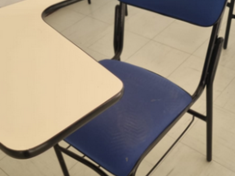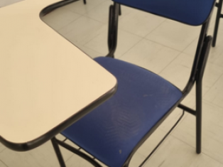 DESCRIÇÃO DOS BENS: 116 CADEIRAS UNIVERSITÁRIAS COM MESA ACOPLADA EM TECIDO AZUL COM TIMBRE BORDADO, COM PORTA LIVROS.