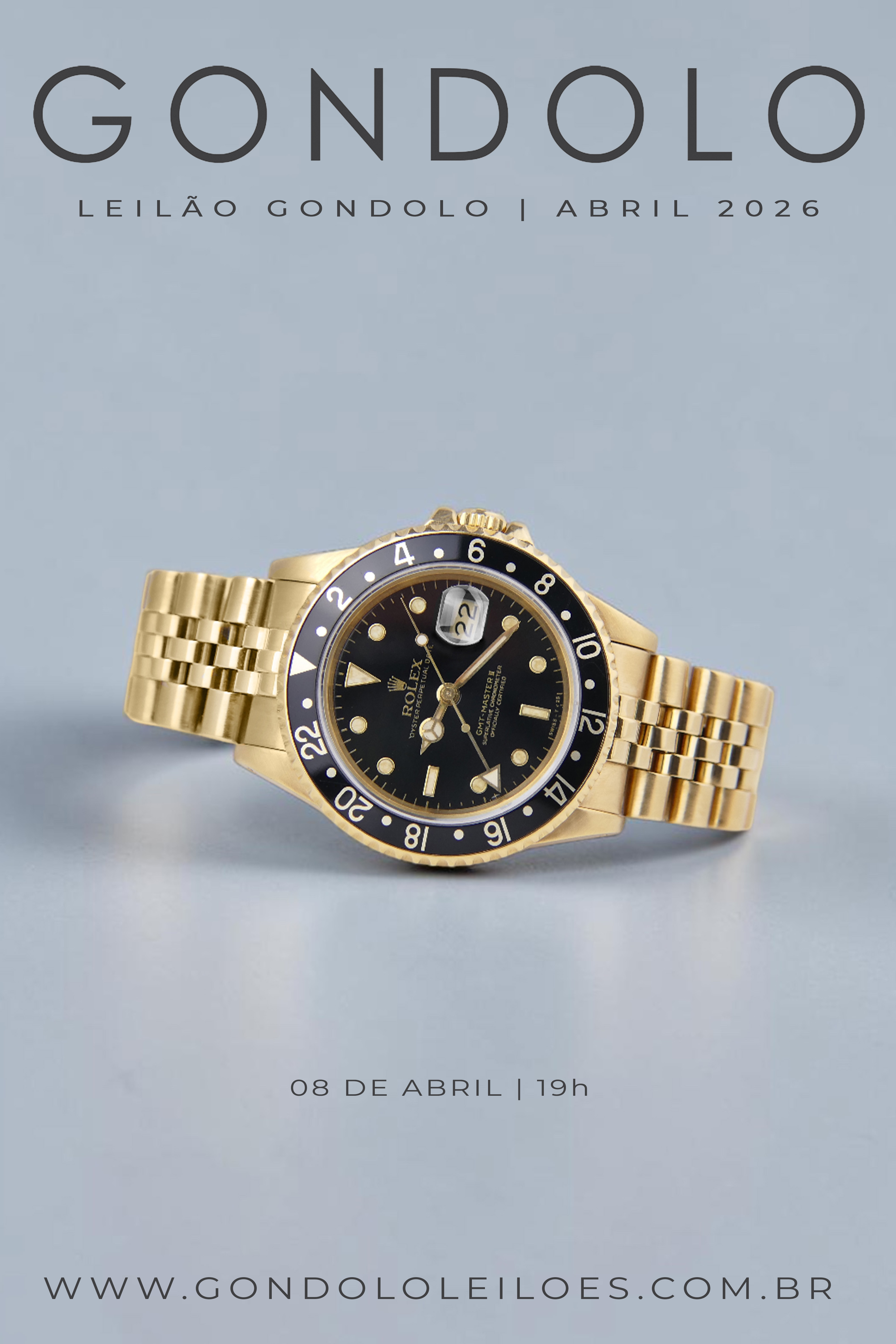- LEILÃO EXTRAJUDICIAL - 60511 - 156 | DIA 08 DE ABRIL DE 2026 EM PREGÃO ÚNICO - PREGÃO NOTURNO - INÍCIO ÀS 19H - EMPRESA ORGANIZADORA DO LEILÃO: GONDOLO LEILÕES - COMITENTES: DIVERSOS COMITENTES - PLATAFORMA PARA LANCES ONLINE: LEILÕESBR - www.leiloesbr.com.br - www.gondololeiloes.lel.br - LEILOEIRO OFICIAL DO ESTADO DE SÃO PAULO: SR. LUCAS ROLNIK DE CARVALHO - JUCESP 979 - LOCAL DO PREGÃO FÍSICO: SEDE DA EMPRESA ORGANIZADORA - GONDOLO LEILÕES - www.gondololeiloes.com.br - ABERTURA DOS LANCES PRÉVIOS: DIA 02 DE ABRIL DE 2026 Todos os relógios passam por rigoroso processo de verificação de autenticidade e por checagem de origem nos dois maiores banco de dados de relógios do mundo que são: The Watch Register ® - www.thewatchregister.com Enquirus (Richemont International SA) ® - www.enquirus.com